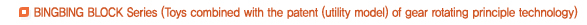 The BingBing Block Series are the blocks that combined operational toy's advantage stimulating children's curiosity and an educational effect for children to naturally learn the geometric structure of gears and mathematical kinetic principle. With bright colors and easy assembly, children can easily complete moving works themselves, and thus the BingBing Block Series are good for brain development and educational effect providing creativity and courage. As the block toys designed for children to directly move them after assembling the blocks, not as the existing blocks to merely build up, infinite creation is possible, and there are various items in the series that can meet children's intelligence and sensibility development. |